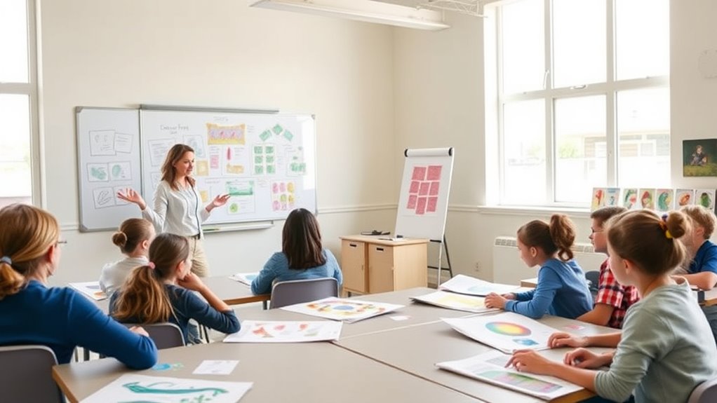 To build a strong student art portfolio and develop presentation skills, focus on organizing your artwork clearly with high-quality images that accurately show your work. Practice explaining your creative process confidently, using brief descriptions and artist statements. Seek feedback from peers and practice presenting to improve your verbal articulation. By refining both your visual presentation and communication, you’ll convey your artistic vision more effectively. Keep exploring these strategies to make your portfolio stand out and showcase your talents convincingly.