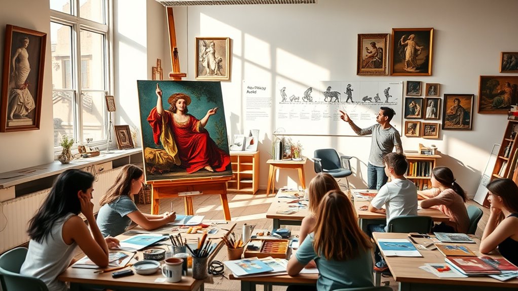 Imagine a delicate dance where painting and history intertwine. When you combine art history with studio work, you might struggle to balance curriculum demands while keeping student engagement high. Students could feel overwhelmed by the wealth of information or distracted from hands-on creation. Managing these challenges requires careful planning so that history enriches rather than complicates, ensuring both educational depth and creative enthusiasm flourish side by side.