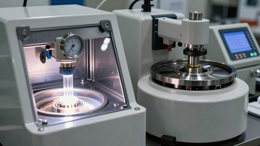 You’ll find that vacuum casting machines generally require more frequent calibration and specific lubrication to maintain precision, whereas centrifugal machines need less frequent calibration and simpler lubrication routines. Regularly check and lubricate moving parts on both, but vacuum systems demand more attention to detail to guarantee consistent results. Proper maintenance, including timely lubrication and calibration, keeps your machines running smoothly and extends their lifespan.