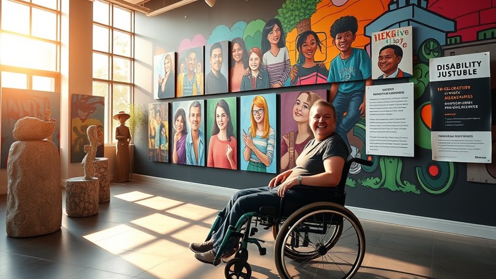 You can explore successful disability-led art initiatives like the Disability Visibility Project and the Crip Camp documentary, which prioritize inclusive curation and community engagement. These initiatives empower disabled artists, amplify their voices, and challenge stereotypes. By involving disabled communities directly, they foster authentic representation. Such projects demonstrate how inclusive curation and active community participation create impactful, accessible art spaces that elevate disability justice and promote wider understanding.