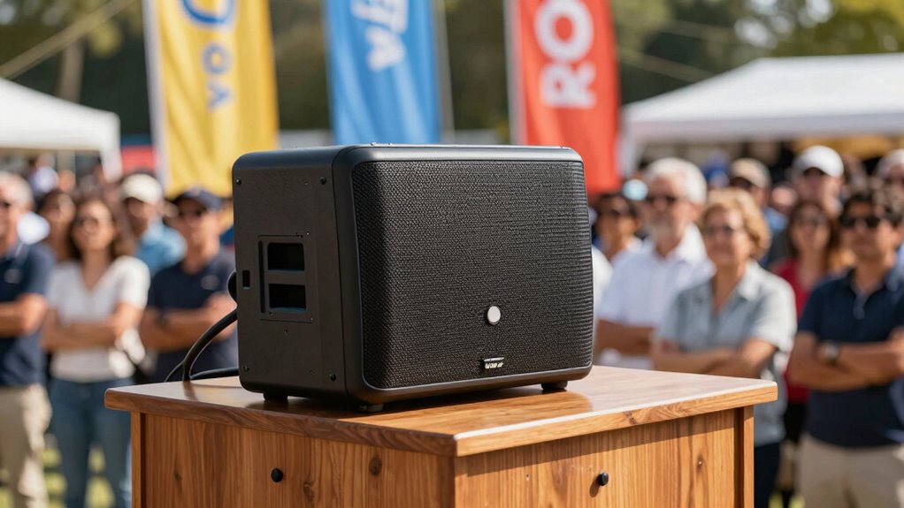 When choosing a portable PA system for your opening, clarity beats sheer loudness every time. Did you know that 85% of event organizers say clear sound enhances audience engagement? Prioritize systems that deliver crisp, intelligible audio, so your message resonates without strain. Remember, a well-chosen system guarantees your event’s success—loud enough to be heard, clear enough to be understood. Don’t settle for volume alone; clarity truly makes your opening unforgettable.