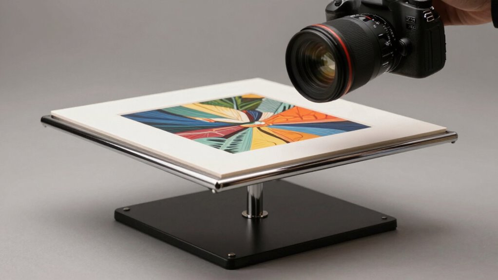 A copy stand might seem boring, but it’s the secret to making your reproduction photos look professional and expensive. It provides a stable platform for your camera, ensuring sharp, consistent images. Proper lighting, camera positioning, and focus are essential for accurate color and detail. Investing time in setting up your copy stand correctly can transform ordinary shots into impressive, high-quality results. Keep exploring to discover how to optimize your setup and truly elevate your photography.