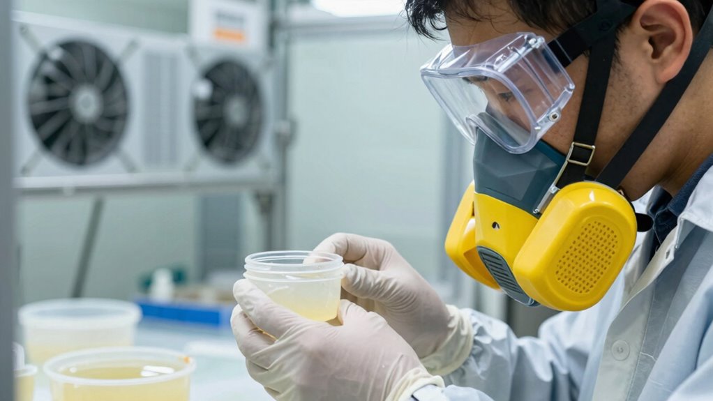Resin safety is vital whenever you work with these versatile materials, as improper handling can pose health risks. Whether you’re pouring epoxy, polyester, or other resin types, understanding how to handle them properly is essential to protect your health. One of the most important aspects of proper handling is guaranteeing that your workspace has adequate ventilation. Resins emit fumes that can irritate your respiratory system, cause allergic reactions, or lead to long-term health issues if inhaled in high concentrations over time. To minimize these risks, you need to set up a well-ventilated area, ideally with local exhaust systems or powerful fans that direct fumes away from your breathing zone. Opening windows and using exhaust hoods can greatly improve air quality, but in some cases, you might need to invest in specialized ventilation equipment. Never underestimate the importance of ventilation requirements—it’s your first line of defense against inhaling harmful vapors. When working with resin, always follow manufacturer guidelines on ventilation. Sometimes, this means working outdoors or in a space with air exchange systems in place. If you’re in an enclosed environment, keep air moving continuously, and consider using air purifiers with activated charcoal filters to trap airborne particles and fumes. Proper handling also involves wearing the right personal protective equipment (PPE). Gloves, for example, are essential because resin can cause skin irritation or allergic dermatitis upon contact. Choose chemical-resistant gloves, and change them frequently if you’re working with multiple resin types or handling multiple projects. Eye protection is equally important—use goggles or safety glasses to prevent splashes from reaching your eyes. A respirator or mask rated for organic vapors can protect your lungs, especially if ventilation isn’t sufficient or if you’re working in a confined space. When handling resin, avoid eating, drinking, or smoking in your work area, as accidental ingestion of resin particles can be hazardous. Always wash your hands thoroughly after completing your work, even if you’ve worn gloves. Proper handling also means understanding the lifecycle of your resin—know how to store it safely, keep it away from heat sources, and dispose of leftover material according to local regulations. Additionally, being aware of ventilation requirements can help you choose the right setup for your workspace. By following these guidelines on ventilation requirements and using the right PPE, you markedly reduce your exposure to harmful fumes and skin contact. This not only keeps you safe but also ensures that your project progresses smoothly without health-related interruptions. Remember, resin safety isn’t just about protecting yourself today—it’s about establishing habits that promote long-term health and well-being every time you work with these materials.
