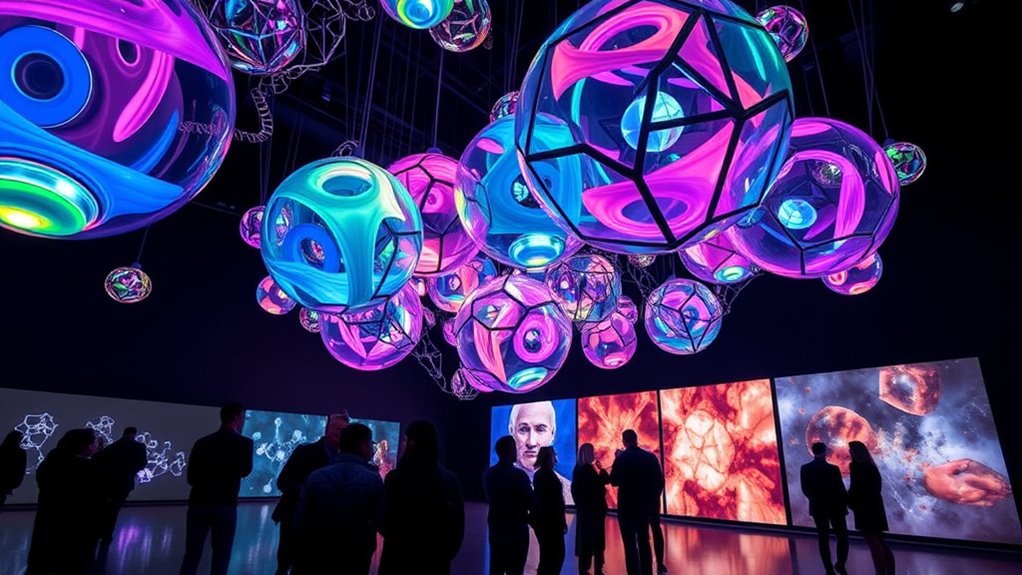 Cross-disciplinary immersive projects are transforming how we approach learning and innovation by blending diverse fields into a single, engaging experience. Imagine stepping into an environment where science and art collide seamlessly, creating an interactive installation that stimulates all your senses. You don’t just observe; you participate. These projects invite you to become part of the experience, breaking down traditional boundaries between disciplines. This approach makes complex scientific concepts more accessible and engaging by transforming them into tangible, sensory-rich environments. Instead of reading about how neurons communicate, you might walk through a space that visually and physically represents neural networks, feeling the vibrations or visual patterns that mimic brain activity. Such sensory experiences deepen your understanding, making abstract ideas more concrete and memorable. Incorporating interactive elements enhances engagement and reinforces learning outcomes, demonstrating the power of multisensory experiences in education.