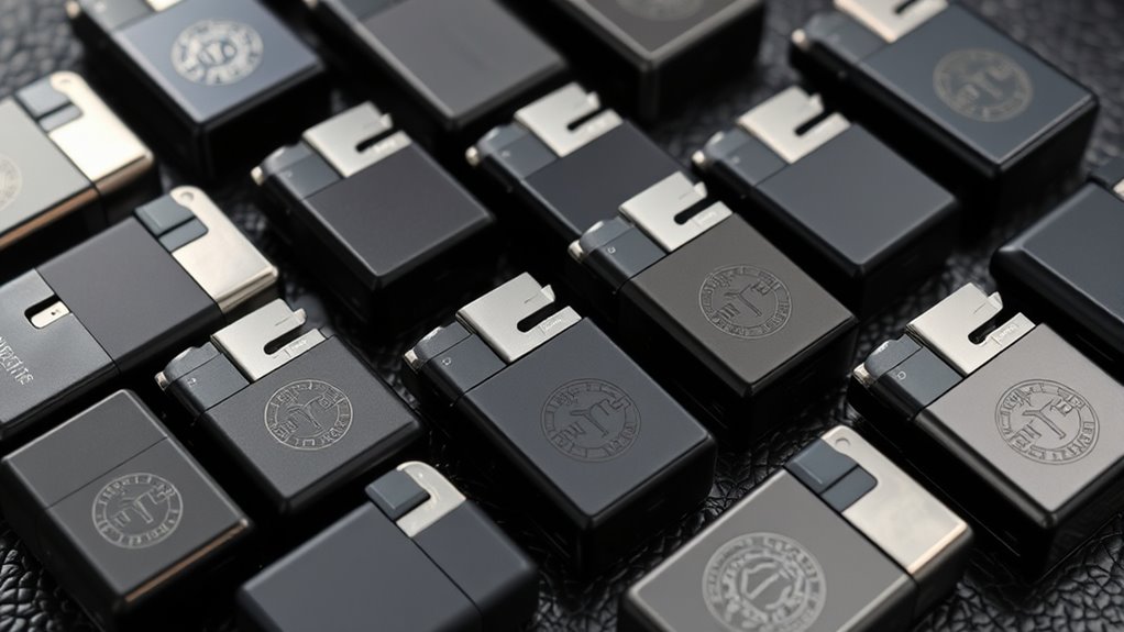 Safety features and locks are essential considerations because they help prevent accidents and guarantee the lighter is safe to handle and transport. Many butane pipe lighters include child-resistant mechanisms or safety switches that require deliberate action to ignite, reducing the risk of unintentional fires. Flame lock features are also common, allowing me to set a continuous flame without holding the button, which minimizes hand strain and accidental ignition. Safety covers or caps protect the ignition system when not in use, adding an extra layer of security. Additionally, flame adjustment controls help prevent excessive flames, reducing hazards. These safety features ensure that the lighter is not only reliable but also safe for everyday use, especially when carrying it around or storing it in accessible places.