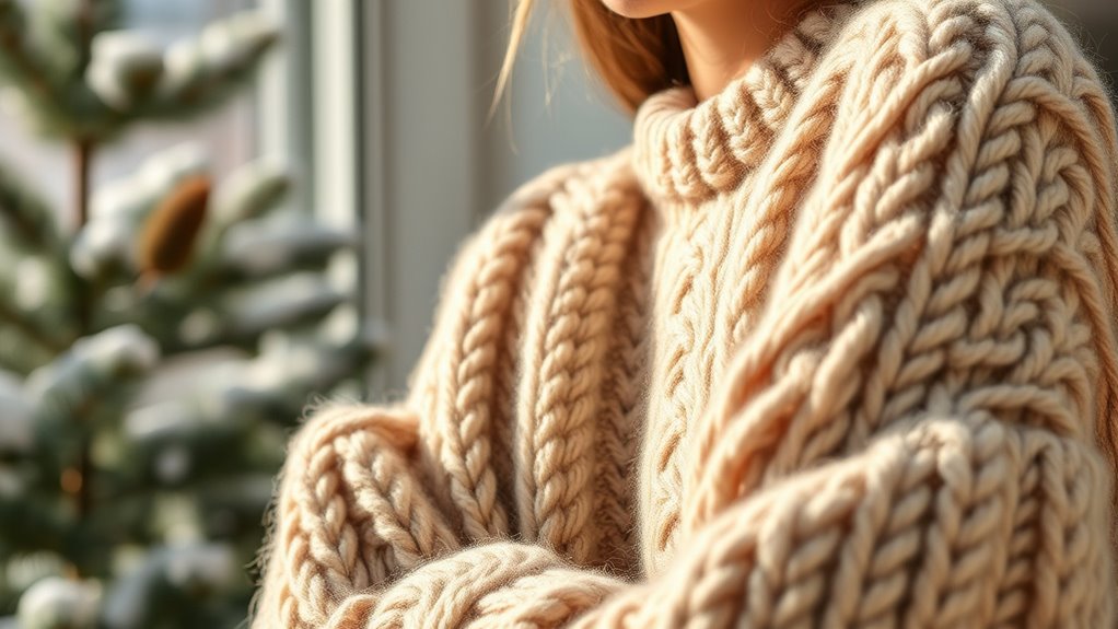If you’re looking to elevate your cozy game in 2025, these chunky knit sweaters are like a gentle hug you can wear. They blend style and comfort so effortlessly, you might find yourself reaching for them more often than you’d admit. Just remember, choosing the right one can make all the difference—think of it as finding that perfect fit for your personal vibe. After all, feeling good in what you wear is truly the ultimate glow-up.