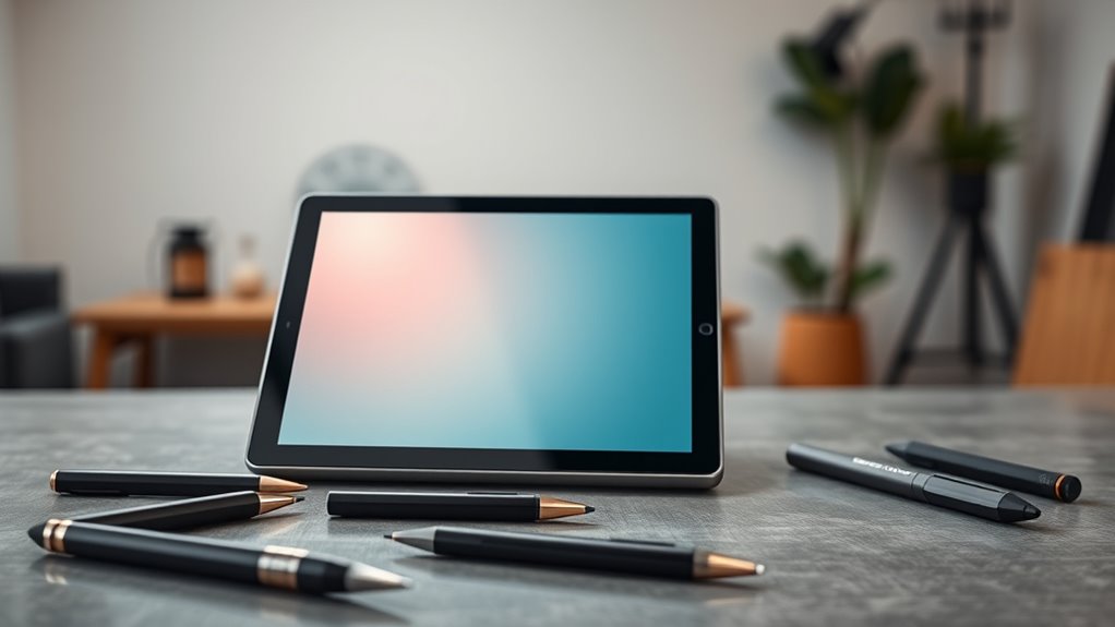 Think of high-end pen displays like the Batcomputer of digital art—they pack powerful features. I notice they often include ultra-precise styluses with tilt sensitivity, customizable buttons, and advanced color accuracy. These tools feel like having a magic wand, giving me control and precision that mid-range options can’t match. Plus, features like integrated calibration and enhanced durability make these displays a true investment for professional artists seeking excellence.