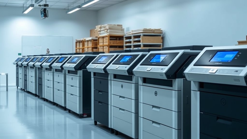 Think of fine art printers as delicate musicians; they need tuning and fresh strings to perform beautifully. Maintenance costs can vary, but expect regular cleaning and part replacements, like ink and print heads, which can add up over time. Ink replacement costs are ongoing, as high-quality inks are essential for vivid, lasting prints. Budget for these expenses to keep your printer humming along smoothly and your artwork stunning.