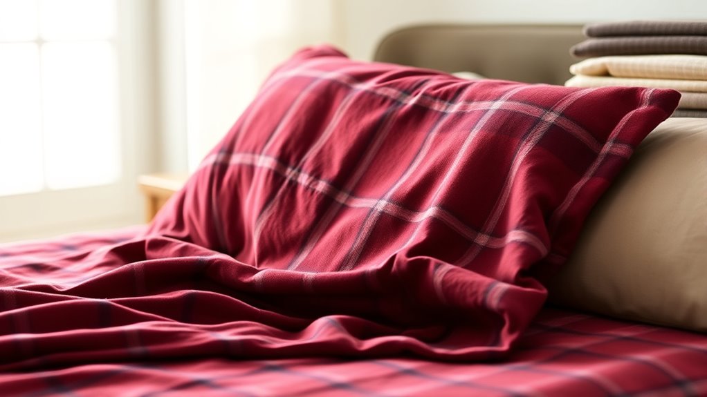 To care for my flannel sheets, I always wash them in cold water on a gentle cycle to prevent pilling. I avoid fabric softeners because they can break down the fibers, and I tumble dry on low heat or air dry to keep them soft and cozy. I also wash them separately to reduce friction. Regular gentle care helps my sheets stay plush and comfortable for many cozy nights.