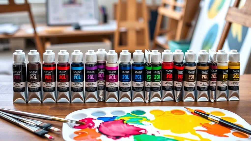 Looking for the best oil paint sets on Amazon for artists of all levels? I’ve found a great mix, from beginner-friendly options like MyArtscape’s 48-tube set to professional collections such as Paul Rubens’ 50ml tubes. There are versatile kits with many colors, brushes, and accessories, plus budget-friendly choices. If you want to discover the ideal set to suit your skills and projects, keep exploring—you’ll find exactly what you need to start or upgrade your art journey.