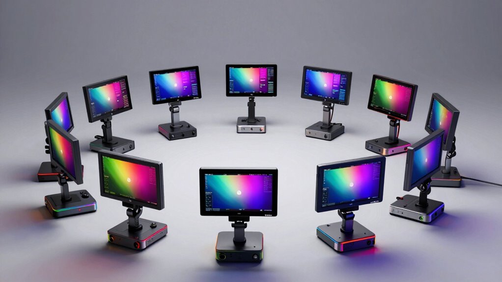 Extended battery life is essential for on-location shooting, allowing me to stay focused on capturing the perfect shot without constantly worrying about power. Many monitors support versatile charging options like NP-F batteries, DC inputs, or Type-C ports, making it easier to stay powered up in different environments. High-capacity batteries, such as 4900mAh or larger, can run for hours, reducing the need for frequent recharging or swapping batteries. Some models even feature quick-charging capabilities and overcharge protection, ensuring reliable power during critical moments. Power management tools like auto-sleep modes and low-battery alerts help extend battery lifespan and prevent unexpected shutdowns. Compatibility with multiple power sources gives me the flexibility to adapt to any shooting scenario, whether outdoors or in a studio.