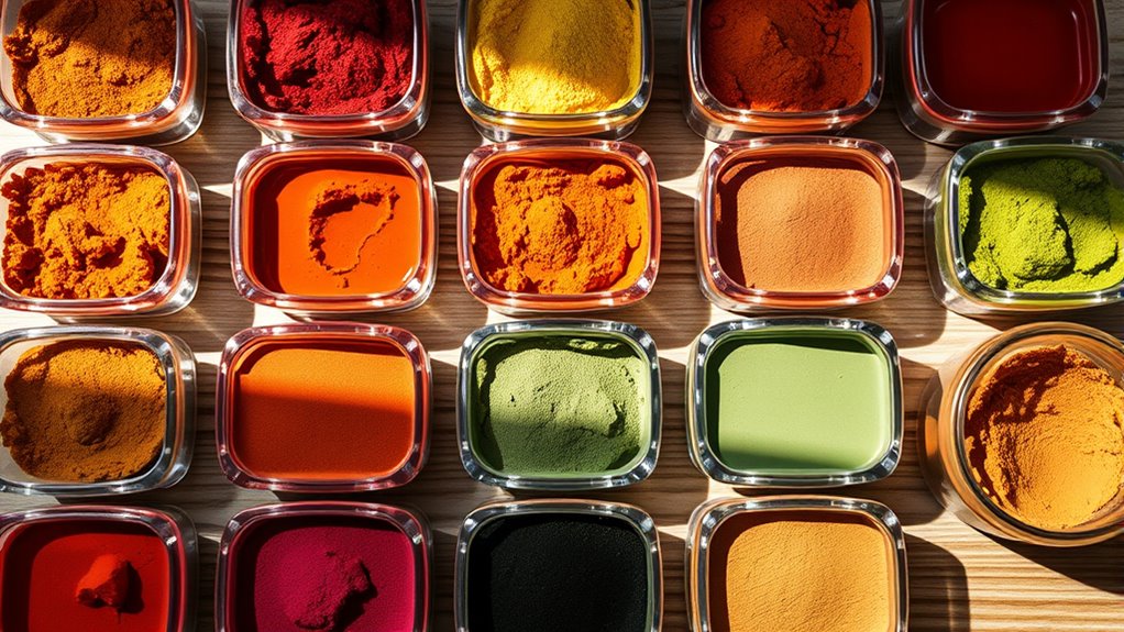 I’ve found that organic pigments can be just as vibrant as synthetic ones, especially with high-quality options. For example, a recent project using organic ultramarine showed stunning depth and brightness comparable to synthetic paints. While some artists worry about vibrancy, I’ve learned that choosing rich, pure organic pigments guarantees lively colors. So, if you select carefully, organic options can deliver the vivid results you desire without sacrificing eco-friendliness.