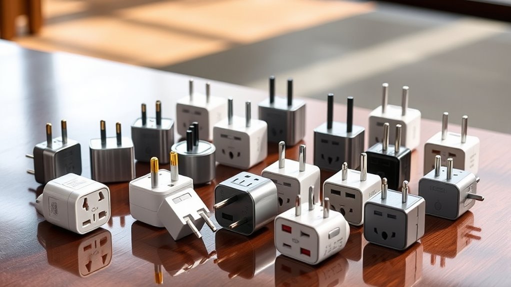 If you’re looking for the best way to stay powered worldwide, I recommend checking out the top 15 universal travel adapters. These offer compatibility with over 200 countries, multiple USB ports, and safety features like surge protection. They’re compact, lightweight, and support fast charging for multiple devices. Keep in mind, they’re not voltage converters, so your devices need to be dual-voltage. Want to find the perfect one? Keep exploring to discover more options tailored for your travels.